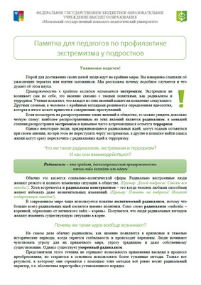 Для использования в работе по профилактике проявлений экстремизма и терроризма среди подростков.