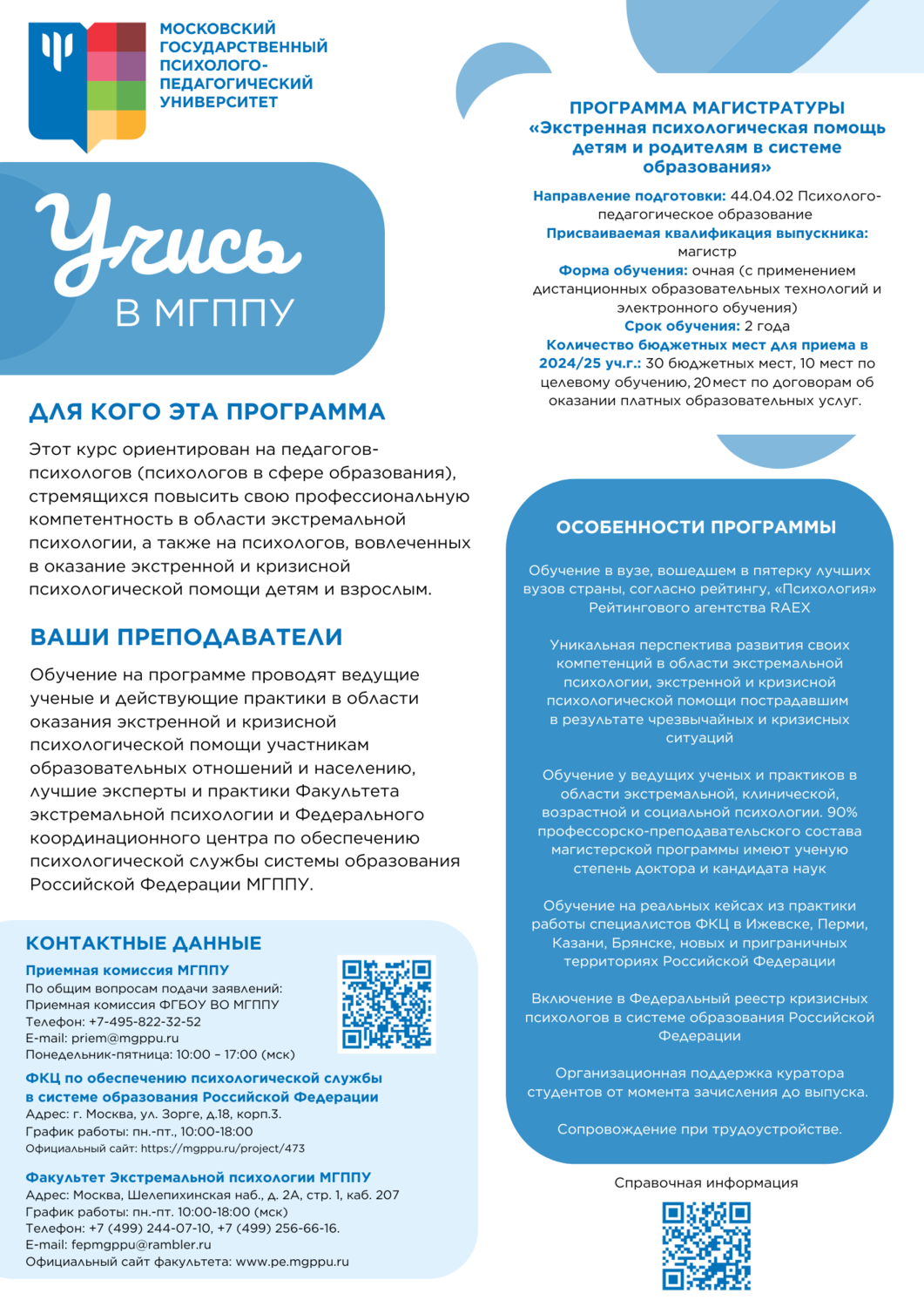 ФГБОУ ВО «Московский государственный психолого-педагогический университет» в рамках приемной кампании 2024 года продолжает набор на обучение по магистерской программе «Экстренная психологическая помощь детям и родителям в системе образования» до 25 июля 2024 года.